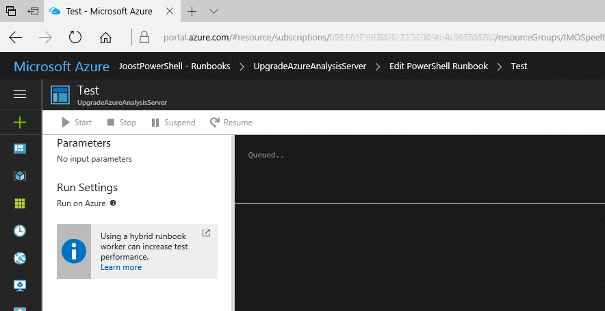 PowerShell (Automation Runbook) を使用して Azure Analysis Services をアップスケールおよびダウンスケールしたいのですが、Tier (Sku) の変更がうまくいかないようです。ただし、エラーはありません。助言がありますか?